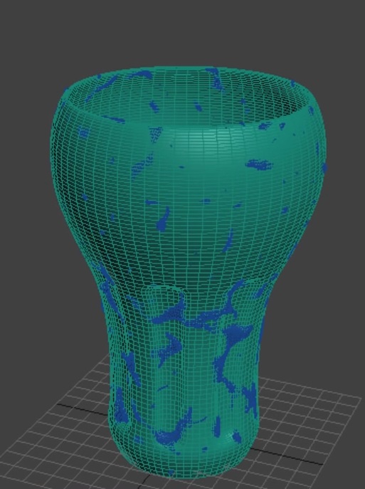 Шаг-6.Теперь, сделаем вдавленные элементы на нашем бокале. Для этого, перейдем в режим выделения полигонов и выделим по окружности все полигоны, которые необходимо вдавить. После этого, нажмем на кнопку Extrude Settings и введём нужное отрицательное значение. В результате у нас получатся вдавленные элементы на объекте, как показано ниже.