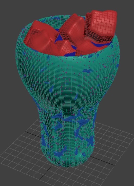 Шаг-31.Осталось нажать на кнопку Play, в данной панели и дождаться пока придёт анимация с 0-го кадра до 100-го кадра. После чего, конвертируем кубики льда в Editable Poly. После чего, очищает нашу сцену, то есть удалим кубики льда, которые вывалились из-за нашего бокала. Затем, переведем наше кубики льда в изолированный режим и соединил их в один объект, с помощью команды Attach.