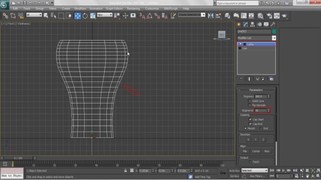 Шаг-3.Теперь, из списка модификаторов находим и выбираем модификатор Lathe. После этого, как мы видим у нас уже получился объект в форме бокала и над которым Нам необходимо далее работать.