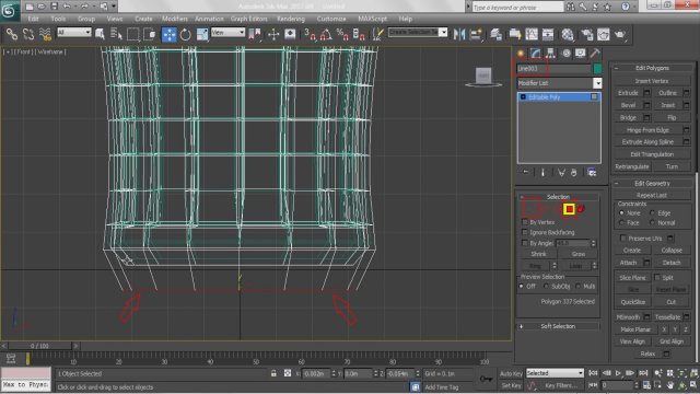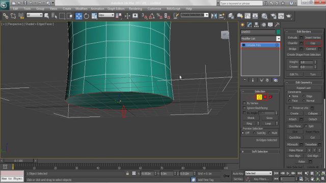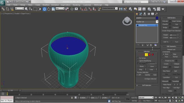 Шаг-4.Теперь, начинаем работать непосредственно с объектом. Переходим в вид перспектива, кликаем по объекту правой кнопкой мыши и выбираем Convert To -> Convert To Editable Poly. После этого, переходим в режим выделения полигонов и выбираем все полигоны в нижней части объекта, жмем на кнопку Delete для удаления всех выбранных полигонов. Далее, переходим в режим Border, выделяем нижнюю грань рёбер и нажимаем на кнопку Cap, чтобы закрыть дырку полигоном.