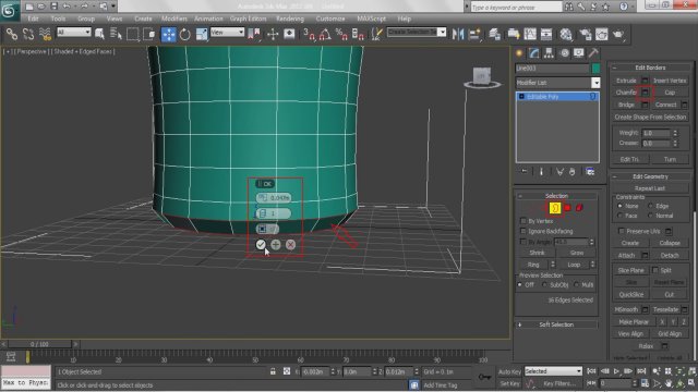 Шаг-5.Теперь, не снимая выделения с выделенных ребер, в свитке Edit Borders выбираем кнопку Chamfer Settings и делаем небольшой скос, как показано ниже.