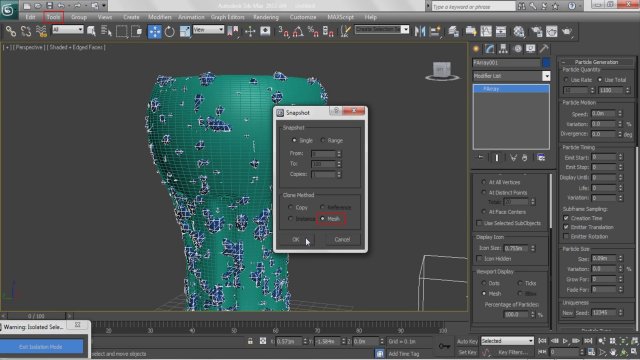 Шаг-18.Зайдем в меню Tools и выберем Snapshot. В появившемся окне выберем метод клонирования Mash, после чего нажмем кнопку ОК.