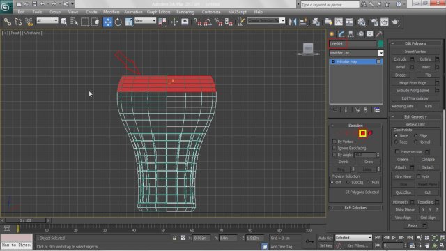 Шаг-14.Далее, следует поработать над внутренним объектом, который имеет имя Line004. Для этого объекта можно удалить имеющиеся модификатор Shell, после чего применить к объекту модификатор TurboSmooth с количеством итераций равного 1. Далее, также, повторно конвертируем объекта в Editable Poly и добавляем верхние полигон, как показано ниже. Этот объект у нас будет выступать в качестве жидкости, а в дальнейшем это будет coca-cola.