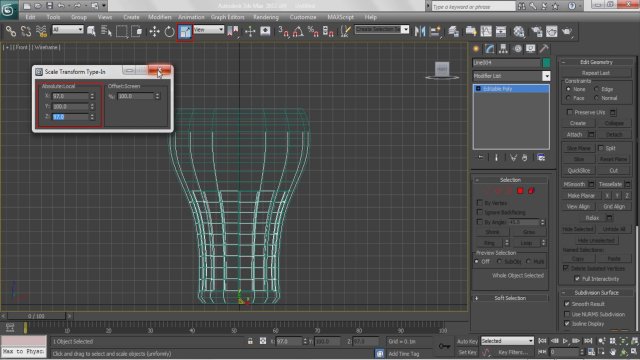Шаг-9.Теперь, нам необходимо совсем немного уменьшить наш объект. Обычным способом это сделать будет очень трудно, поэтому сделаем это вручную. Для этого, крикнем правой кнопкой мыши по инструменту масштабирования и в появившемся окне зададим нужные значения.