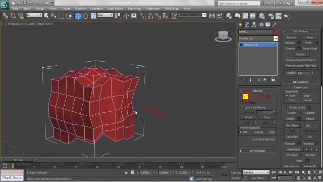 Шаг-27.Перейдем в режим редактирования точек Vertex, и начнём двигать точки, чтобы в результате получился объект похожий на кубик льда. После этого, применим к нашему объекту модификатор TurboSmooth.