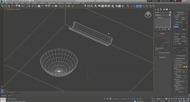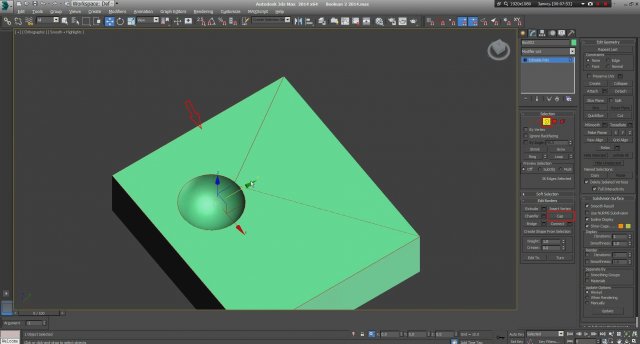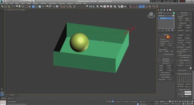 Создадим два примитива: бокс и сферу. Переведём эти два объекта в Editable Poly и расположен сферу так, чтобы она пересекала поверхность бокса.