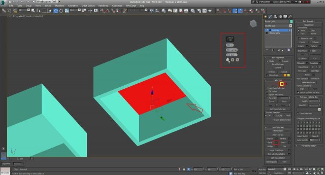 Итак, выделяем Нижний полигон, нажимаем на кнопку Bevel Settings и сначала покрутим второй параметр, который отвечает за команду inset. После этого, нажимаем на плюсик, второй параметр ставил на 0 и крутим первый параметр, который отвечает за команду Extrude. Результат который должен получиться представлен ниже.
