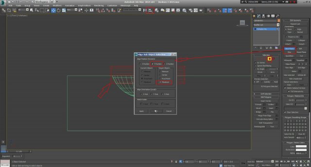 Теперь переходим к сфере, выделим у неё все полигоны и применим команду Slice Plane. Выравниваем плоскость Slice Plane по верхней границе бокса, как показано ниже. После этого, нажимаем на кнопку Slice, чтобы добавить новое ребро на сфере.