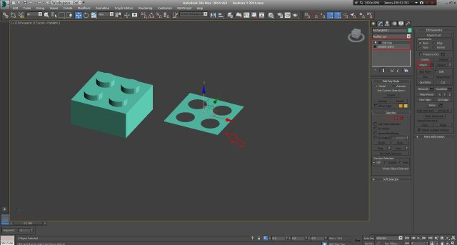 Далее присоединил сферу к боксу. Для этого, выделим объект бокс, нажмем на кнопку Atach и кликнем по сфере.