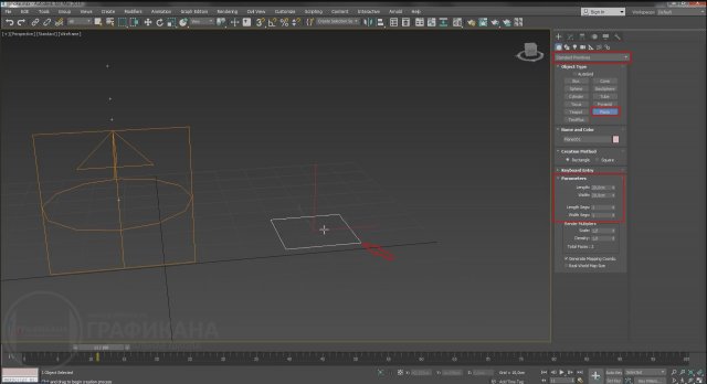 Шаг-3.Теперь нам нужно создать одну частичку дыма. Для этого создадим в окне объект Plain, с размерами 20 на 20 см.