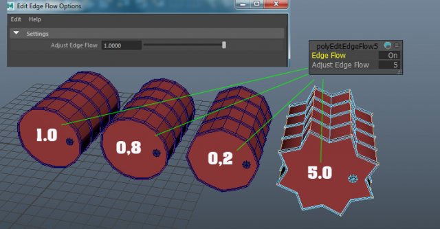 Выберите все вновь созданные ребра и примените к ним Edit Edge Flow. Однако, вам нужно знать, что в Maya значения по умолчанию фактически не работают.