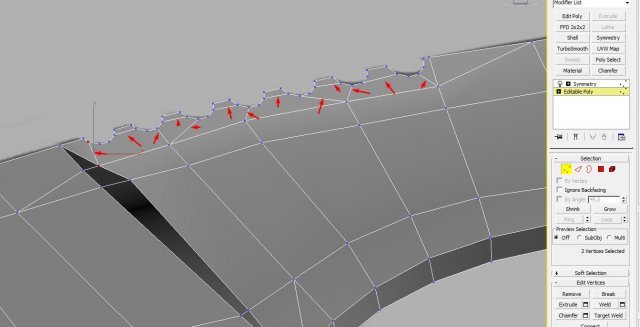 Данную операцию мы сделали с одной стороны, так как на вторую сторону будет применён модификатор Symmetry.