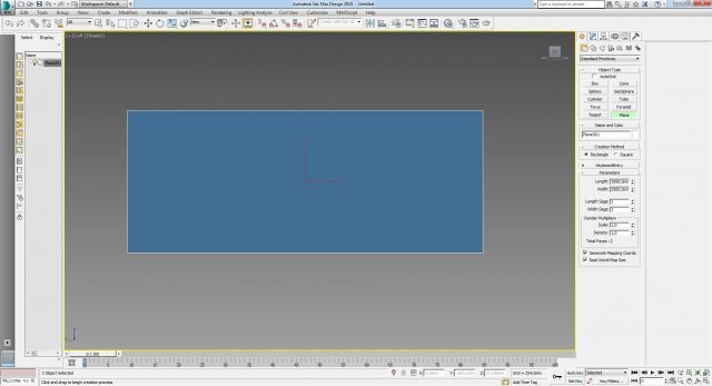 Итак, чтобы правильно разместить референс во вьюпорте, необходимо посмотреть его ширину и высоту. После этого, в 3DS Max переходим в Left и создаем там стандартый параметр Plane.