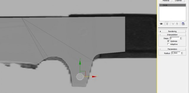 Шаг-33.Теперь делаем нижние вырезы на лезвии. Делаем их таким же методом, как мы делали ранее сверху объекта. Т.е. создаём цилиндр с 16 сторонами, после чего конвертируем его в Editable Poly и придаём ему нужную форму с помощью модификатора FFD 2х2х2.