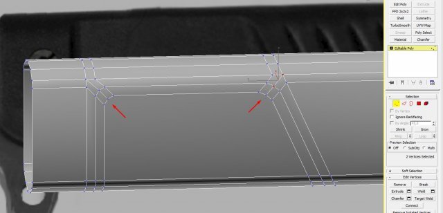 Шаг-41.Теперь выбираем нужные рёбра и делаем им двойной Chamfer для того, чтобы скруглить углы. Затем необходимо грамотно соединить вершины. Посмотрите как получилось у меня и попробуйте сделать то же самое.
