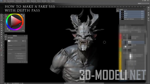 - Пайплайн работы с плагином ZbrushToPhotoshop с объяснением 6 наиболее необходимых пассов